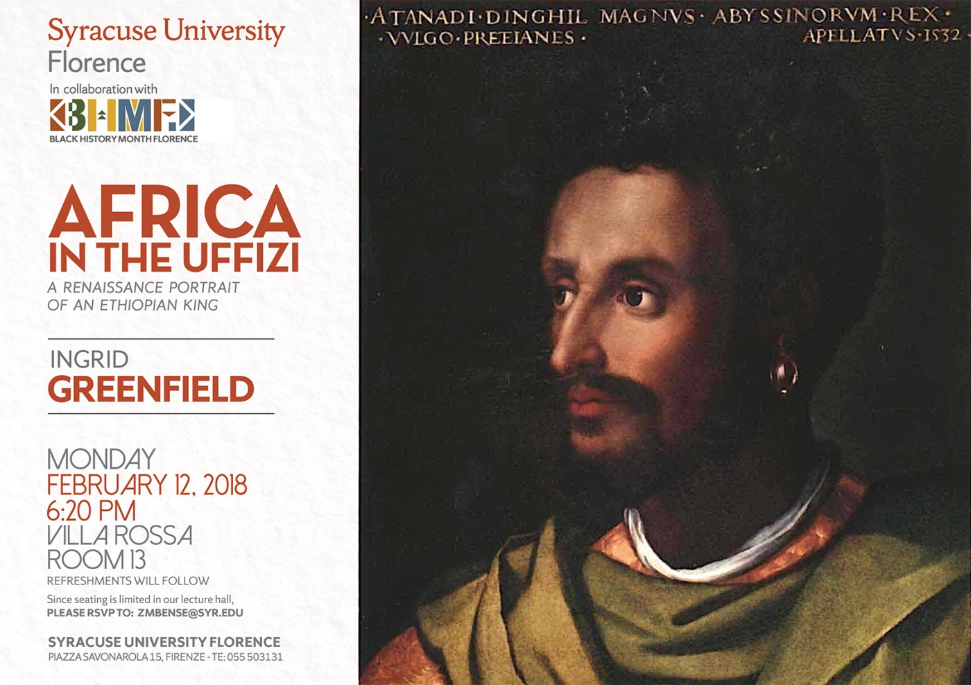 Africa in the Uffizi In collaboration with Black History Month-Florence At Syracuse University – Florence RSVP: zmbense@syr.edu Condividi: Fai clic per condividere su X (Si apre in una nuova finestra) X Fai clic per condividere su Facebook (Si apre in una nuova finestra) Facebook Mi piace Caricamento... Correlati Lascia un commento Cancella risposta Δ
