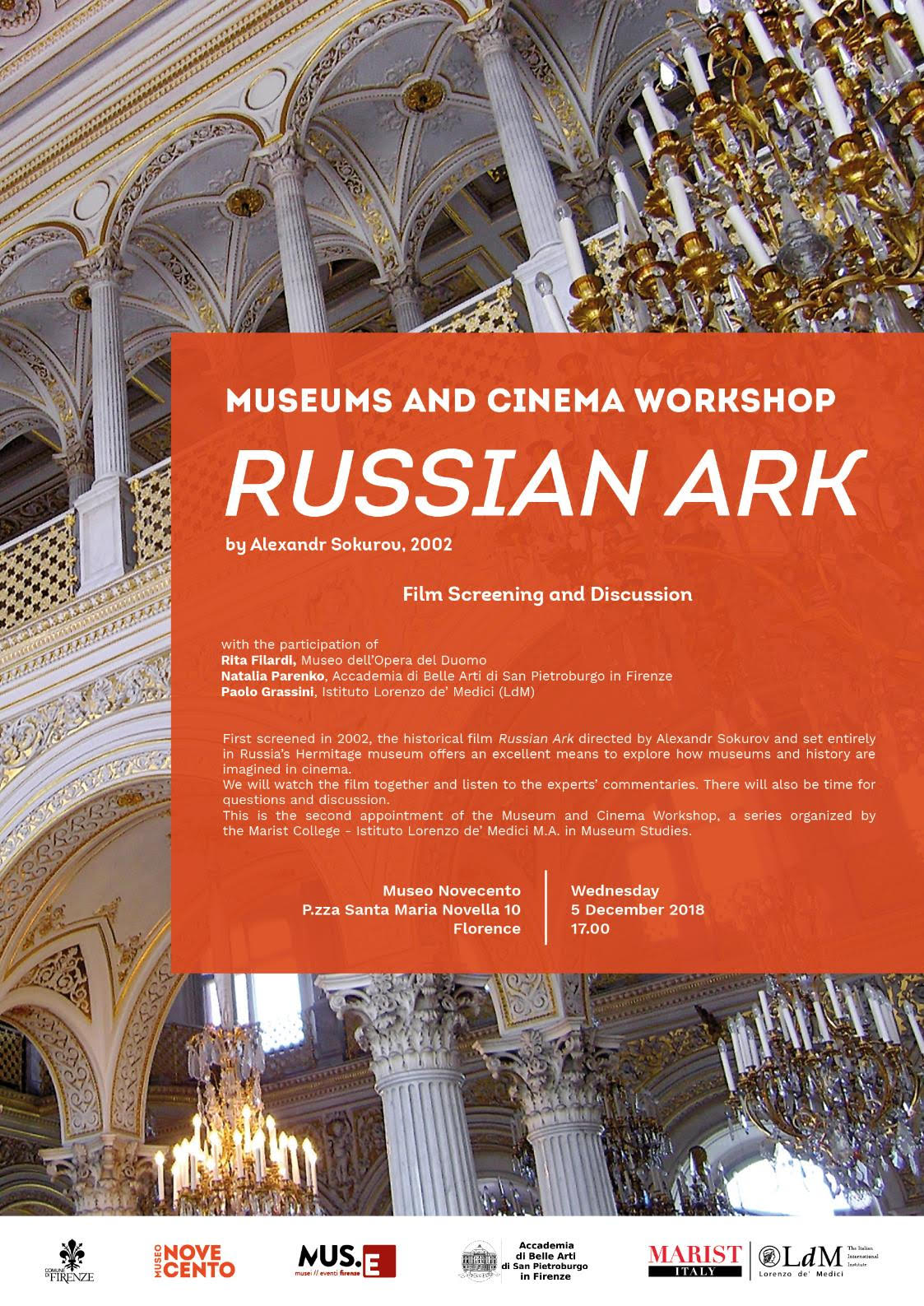 After watching the film together, participants of this workshop will listen to the critical commentaries of Rita Filardi, Registrar at Museo dell’Opera del Duomo, Natalia Parenko, Director of Accademia di Belle Arti di San Pietroburgo in Firenze, Paolo Grassini, Film Historian, Supervisor of Media Arts and Studies, Istituto Lorenzo de’ Medici (LdM), before a concluding session of questions and debate.