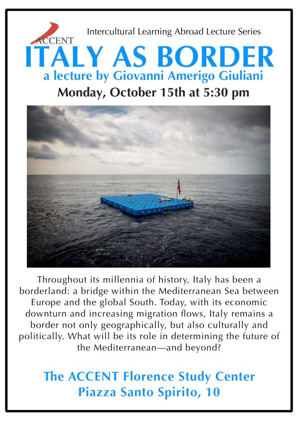 The seminar will take place on Thursday, November 22, at 3:00 pm at the ACCENT Study Center, Piazza Santo Spirito 10, Florence.