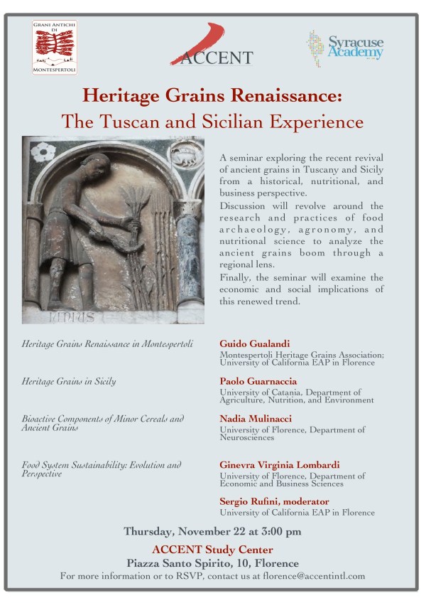 Seminar Ancient Grains Renaissance: The Tuscan and Sicilian Experience organized by ACCENT in collaboration with the University of California EAP in Florence.